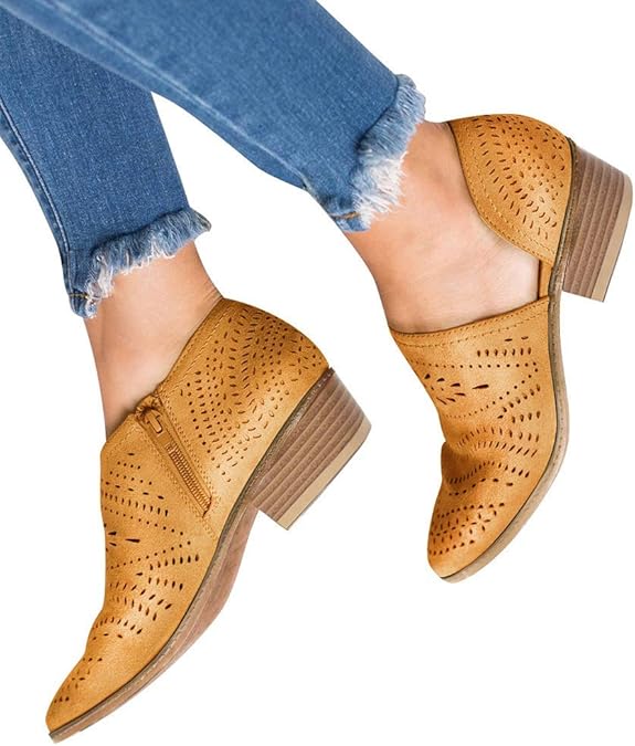 Amazon Com Botas De Tobillo De Cuero Para Mujer Estilo Retro Casual Antideslizante Con Punta De Punta Zapatos De Tacon Bajo Botines Clothing