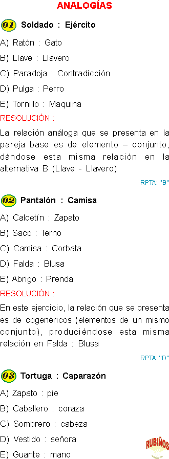Analogias Verbales Prueba Desarrollada Ejercicios Resueltos De Habilidad Aptitud Y Razonamiento Verbal Pdf