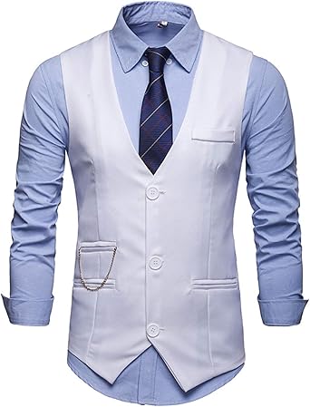 Yingqible Chaleco Hombre Casual Boda V Cuello Traje Negocios Con Botones Sin Mangas Retro Vestir Banquete Ceremonia Blazers Amazon Es Ropa Y Accesorios