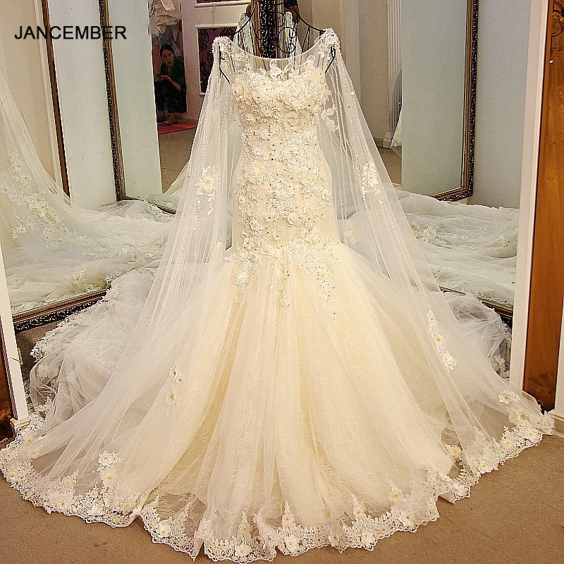 Ls54821 Vestidos De Novia De Lujo De Sirena Princesa Con Capa Larga De Encaje De Cola De Sirena Corse Espalda Vestidos De Novia Corte Sirena Wedding Dress Princess Mermaid Wedding Dressesluxury Mermaid Wedding Dresses