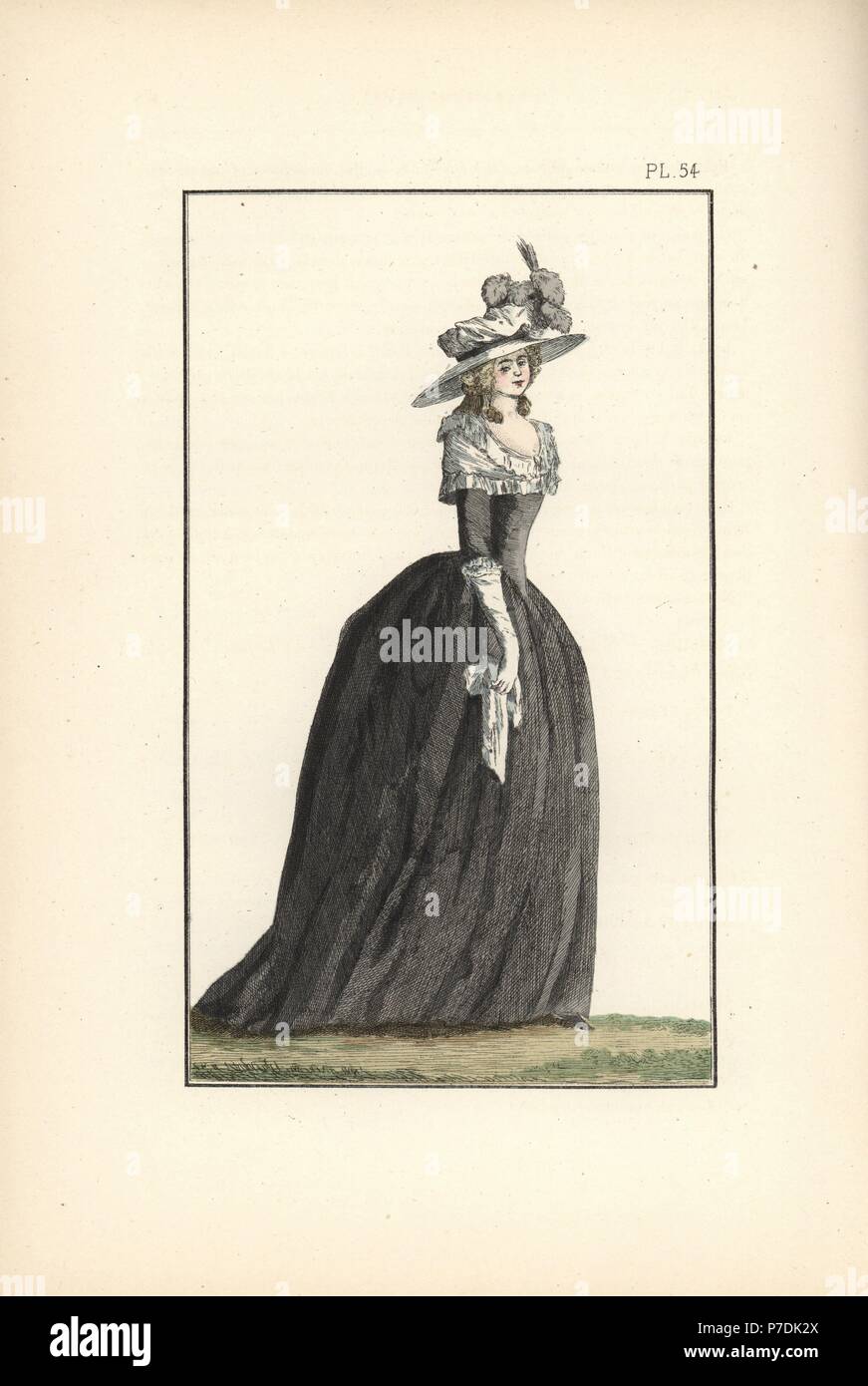 Mujer De Luto Vestido De Tafetan Negro Fichu De Gasa Blanco Italiano Y Capot Hat En