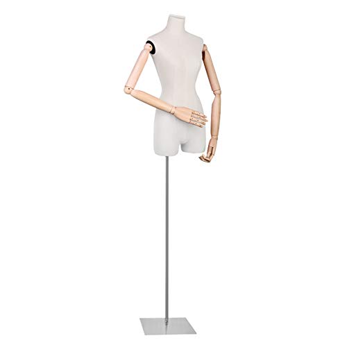 Zhas Forma De Vestido Femenino Con Brazos Ajustables Torso De Maniqui De Medio Cuerpo Con Base De Madera Para Exhibicion De Ropa De Camisetas De Joyeria En Tiendas Minoristas Color Estilo C