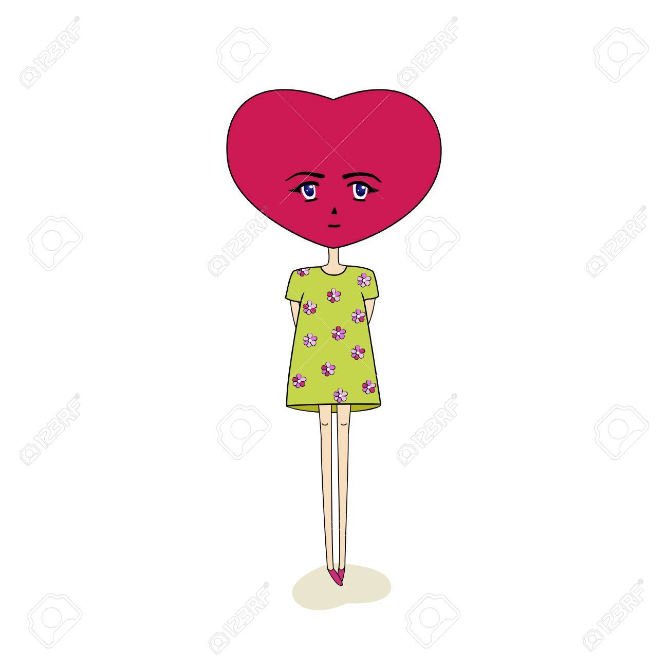 Un Personaje Ficticio Con Una Cabeza En Forma De Corazon De Pie Con Un Vestido Verde Ilustracion Vectorial Fondo Blanco Aislado Ilustraciones Vectoriales Clip Art Vectorizado Libre De Derechos Image 85251155
