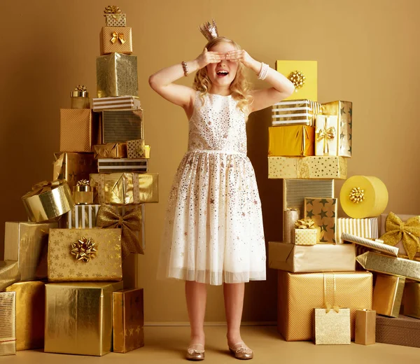 Retrato Larga Duracion Pequena Princesa Moderna Alegre Forma Beige Vestido Foto De Stock C Citalliance 246182936