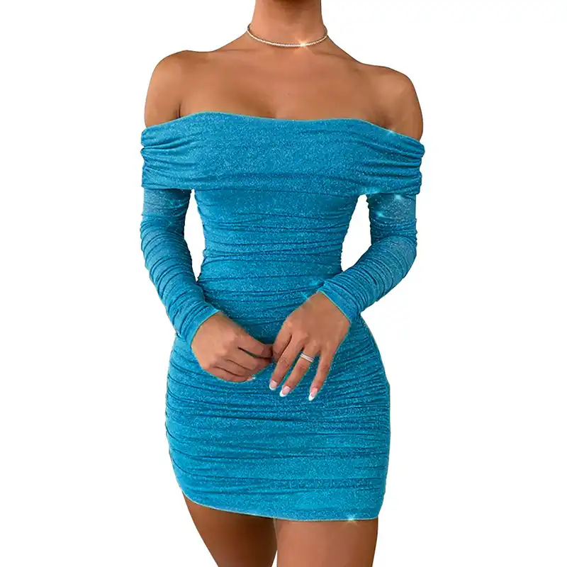Vestido Corto Con Hombros Descubiertos Brillante De Manga Larga Cenido Al Cuerpo Vestido 2020 De Fiesta De Moda Sexy Mini Vestidos Fruncidos Aliexpress