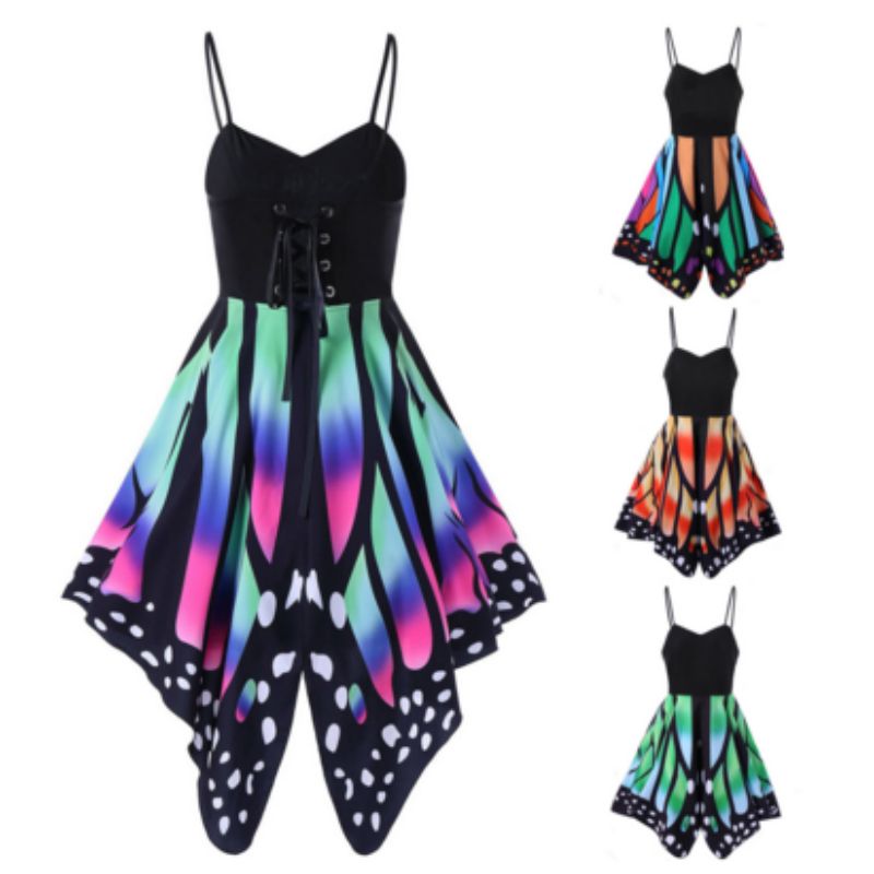 Compre 2017 Nuevo Estilo Vendajes Vestido Estampado De Mariposa Falda Con Correas De Hombro Ata Para Arriba El Vestido De Camisola De Deslizamiento Irregular Dobladillo S Xxl A 8 42 Del Xiexingya Dhgate Com