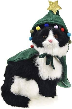 Amazon Com Disfraz De Elfo De Arbol De Navidad Para Gatos Gatitos Gorro De Mascota Capa De Invierno Forro Polar Chaqueta Abrigo Ropa Para Yorkie S Mascotas