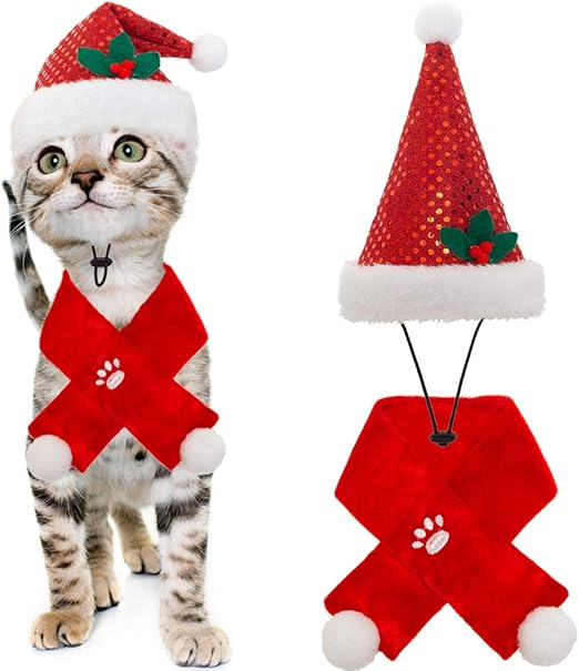 Amazon Com Bingpet Disfraz De Navidad Para Gato Bufanda Y Sombrero De Papa Noel Para Gatito Cachorro Gatos Pequenos Perros Mascotas