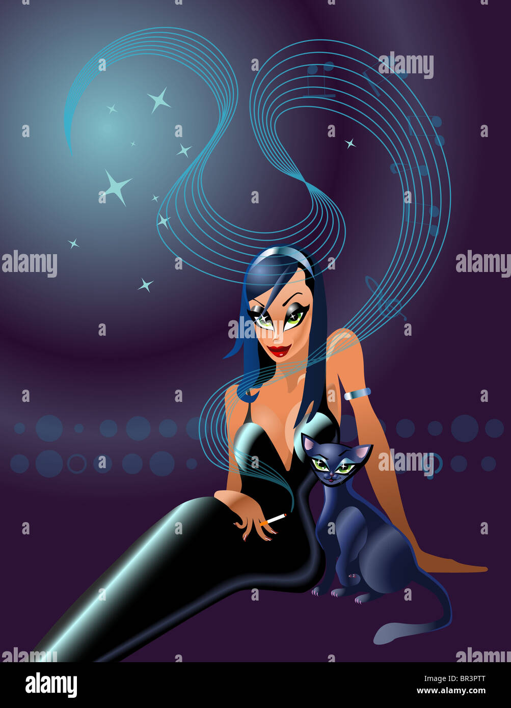 Mujer Del Vestido Del Gato Negro Imagen De Archivo Imagen De Demostraci Manera 60237837