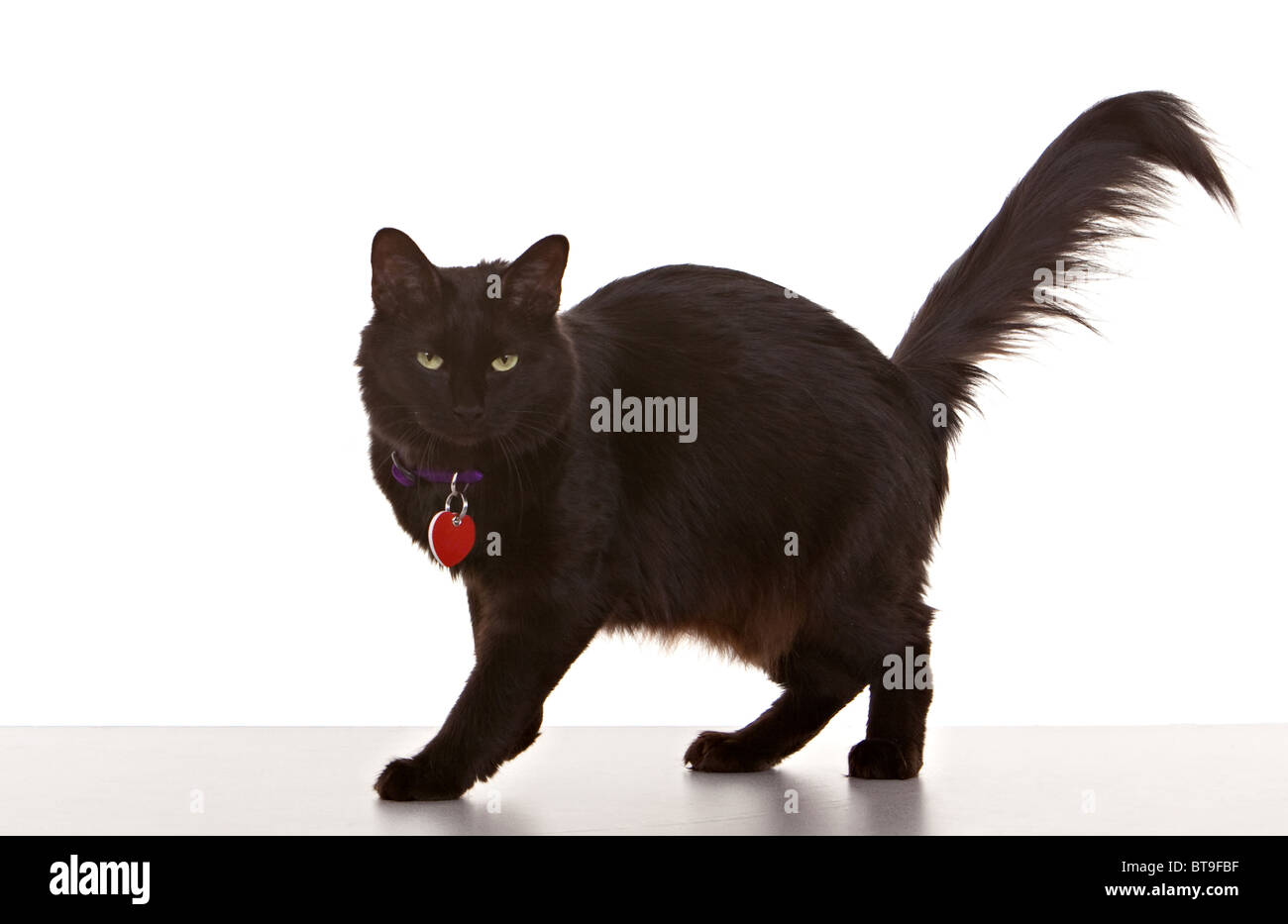 Gato Negro Sobre Fondo Blanco Vestidos De Etiqueta Y Collar Fotografia De Stock Alamy