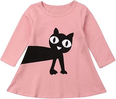 Amazon Com Little Toddler Falda De Manga Larga Con Estampado De Gato Negro Cuello Redondo Vestido Largo Clothing