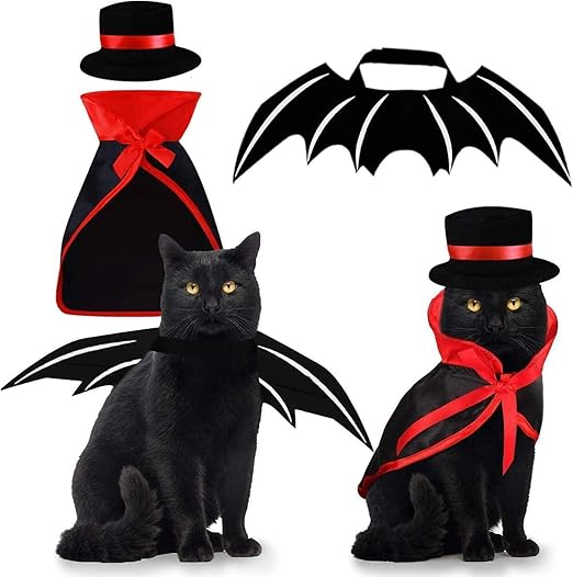 Amazon Com Disfraces Para Mascotas Cat Cosplay 3 Piezas Capa De Vampiro Con Sombrero De Bolos Alas De Murcielago Disfraces De Mascotas Para Gatos Pequenos Ropa Divertida De Vacaciones Para Halloween Negro Noche
