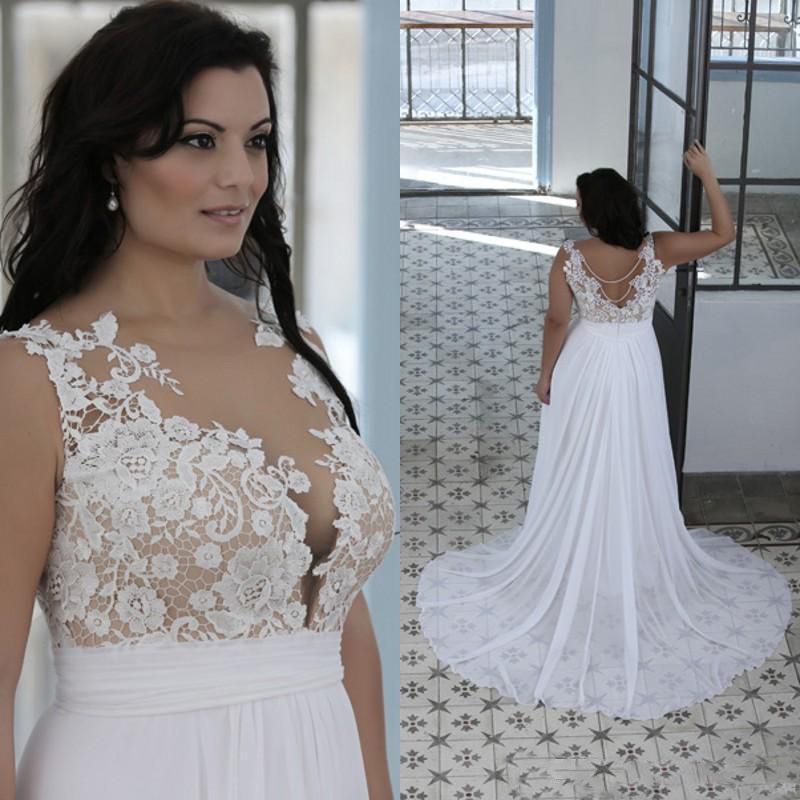 Compre Vestidos De Novia De Talla Grande Mujeres Gordas Carino Sheer Bateau Cuello Top De Encaje De Playa Vestidos De Novia Blanco Desnudo Vestido De Novia De Alta Calidad A 62 55
