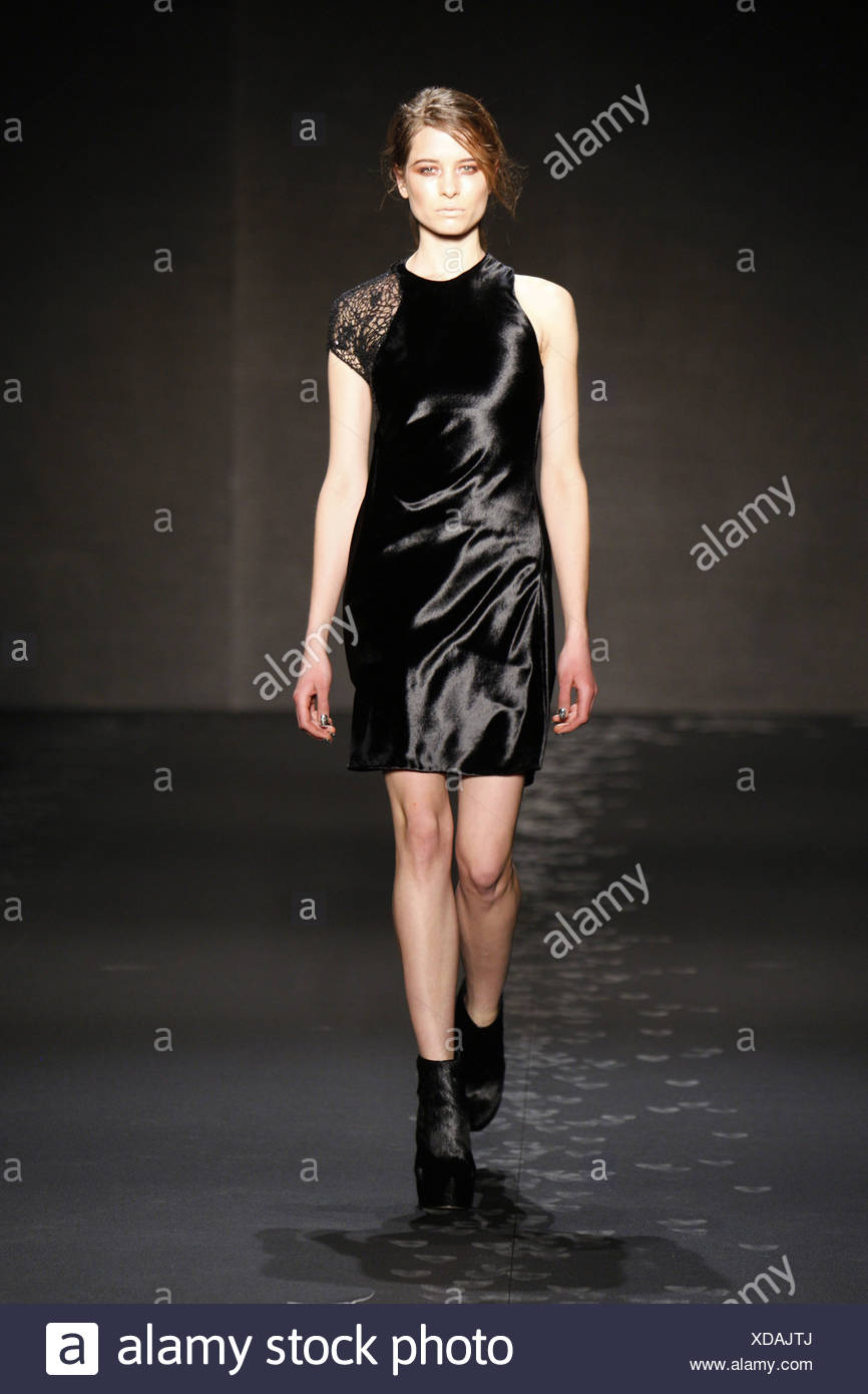 Cushnie Et Ochs Nueva York Lista Para Usar Otono Invierno Vestido Negro Con Una Manga Corta De Encaje Y Botines Negro Fotografia De Stock Alamy