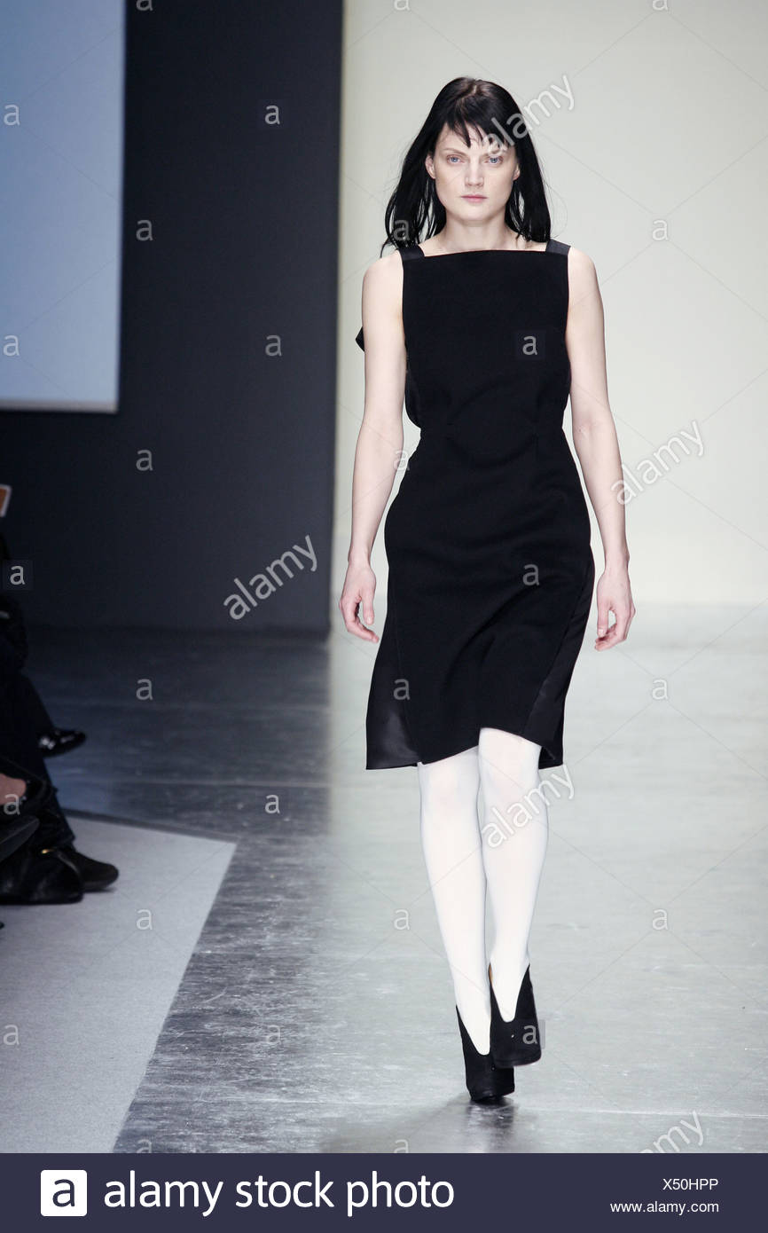 Gianfranco Ferre Milan Listo Para Otono Invierno Desgaste Pinafore Vestido Negro Longitud De La Rodilla Medias Blancas Y Negras Botas Zapatos Fotografia De Stock Alamy