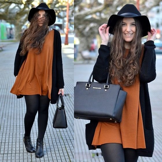 Combinar Unas Medias Negras Con Un Vestido Marron Claro En Invierno 2021 2 Looks Outfits Mujere Lookastic Mexico