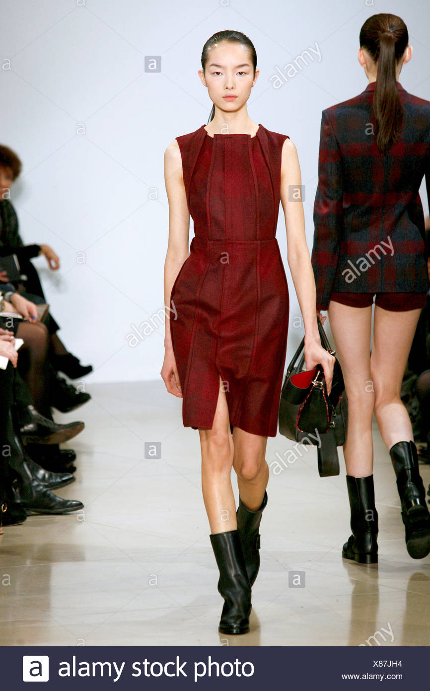 Jil Sander Milan Listo Para Ponerse Otono Invierno Rojo Sin Mangas Vestido Esculpidas Negro Botines Y Bolso De Cuero Negro Fotografia De Stock Alamy