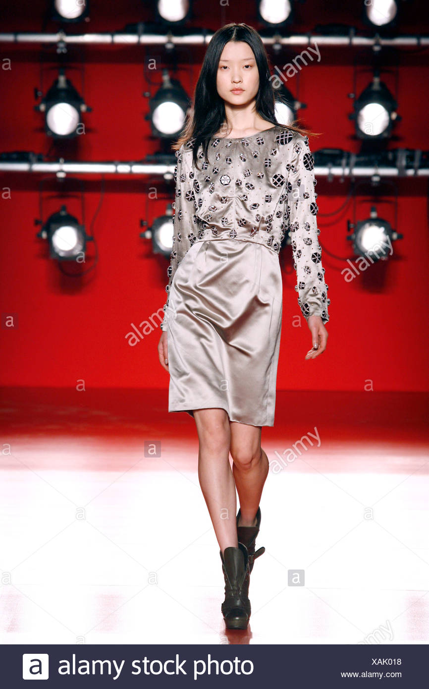 Daks Listo Para Ponerse Milan Otono Invierno Manga Larga Purpura Palido Vestido Con Telas Top Botines De Plataforma Fotografia De Stock Alamy
