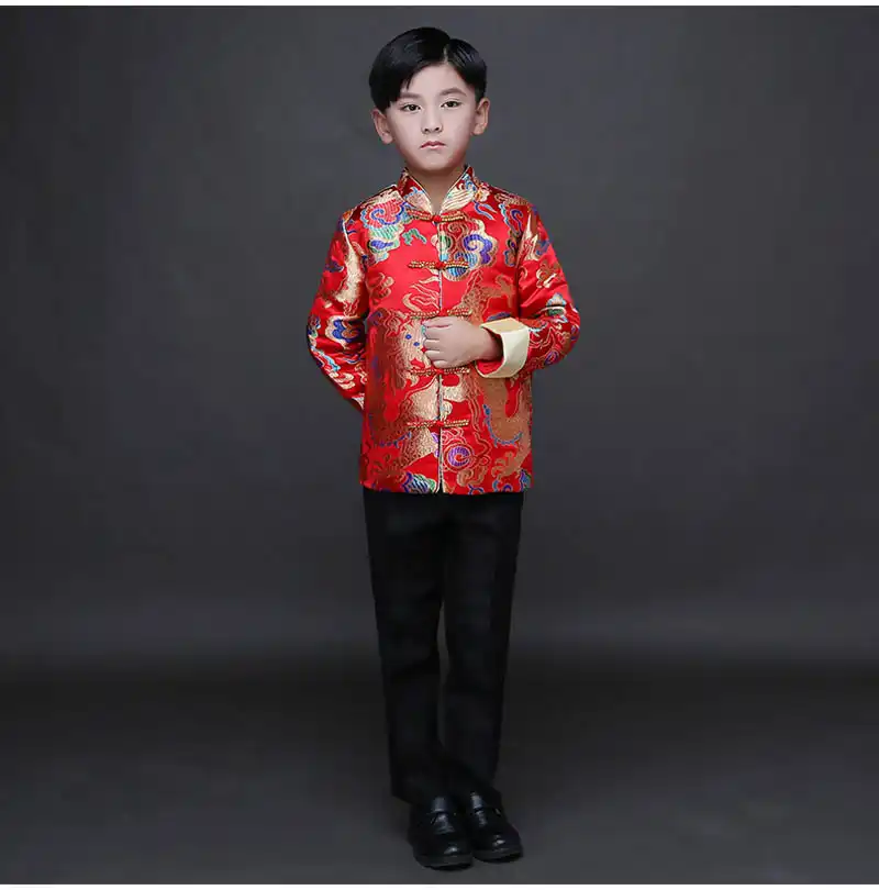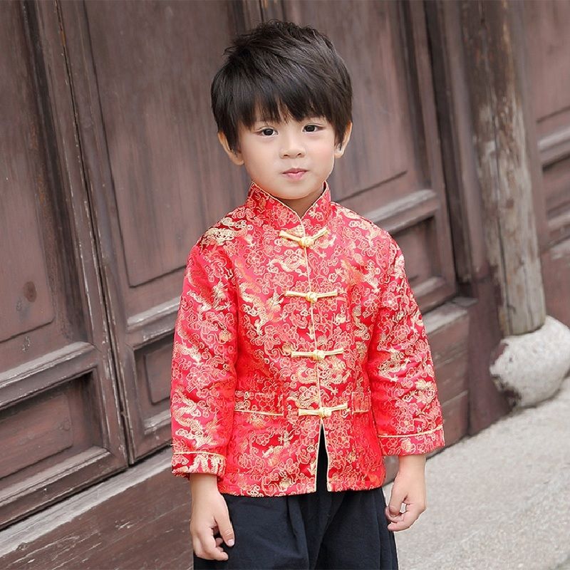 Compre 2019 Festival Del Ano Nuevo Chino Chaqueta De Los Ninos Chicos Ropa De Disfraces Chaqueta De Baby Boy Rojo Marino Trajes De Dragon Ropa De Abrigo Amarilla A 41 73 Del