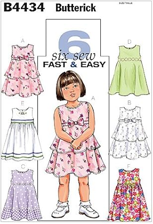 Butterick 4434 Cf Patrones De Costura Para Vestidos De Nina 6 Variantes Tallas 4 6 Anos 110 122 Cm Amazon Es Hogar