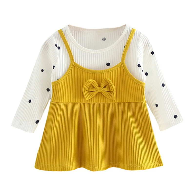 Verano Casual Bebe Dulce Ninas Lindo Falso 2 Piezas Diseno Polka Dot Patron Vestido De Manga Larga Ninos Nino Desfile Vestido De Sol Para 6 Vestidos Aliexpress