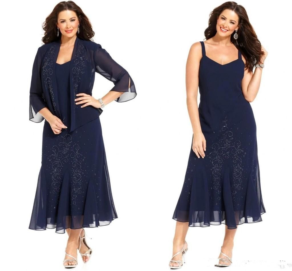 Compre Nueva Sexy Dark Navy Talla Grande Vestidos Para Madre De La Novia Carino Cristal Chiffon Con Chaqueta Longitud De Te Vestido De Madre Vestidos De Boda A 100 22 Del Crystalbridal888