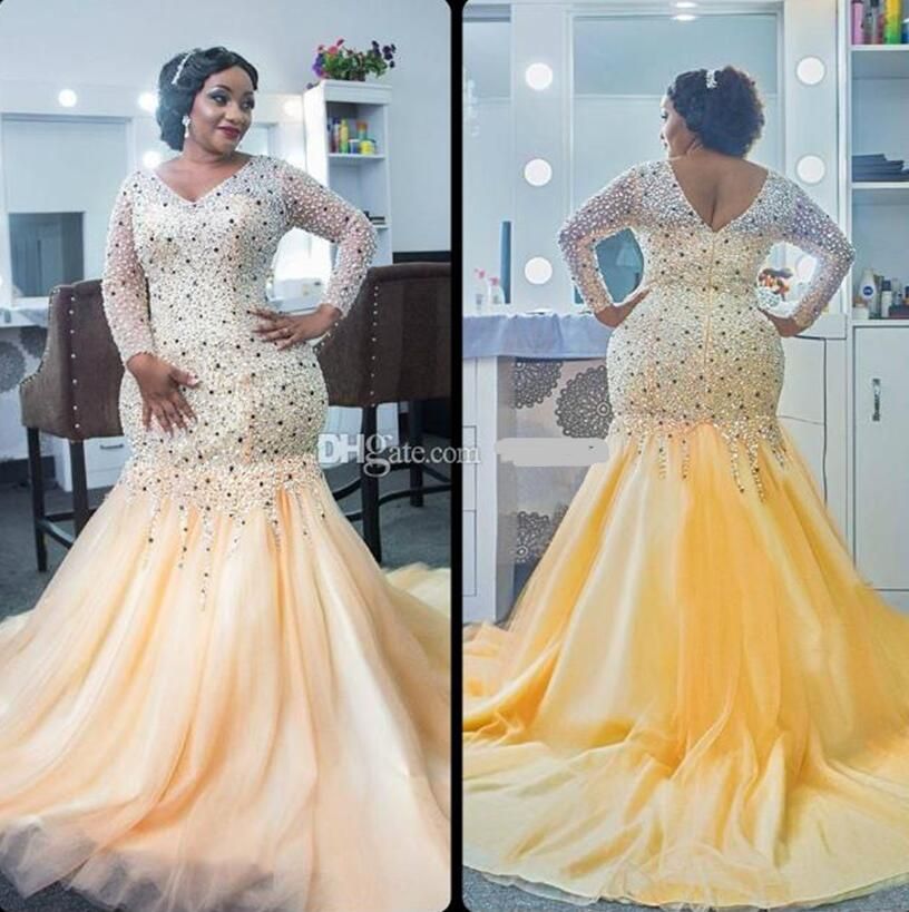 Compre Elegantes Tallas Grandes Vestidos De Noche Con Cuentas Brillantes De Cristal De Manga Larga Vestido De Fiesta Sirena Africana Vestido De Fiesta Por La Noche Para Las Mujeres Vestidos A 104 31