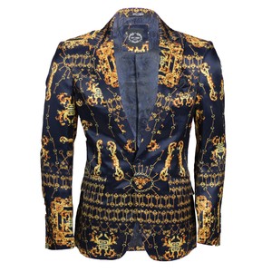 Para Hombres Calce Cenido Estampado De Oro Azul Marino Retro Disenador Estilo Inteligente Informal Chaqueta Blazer Ebay