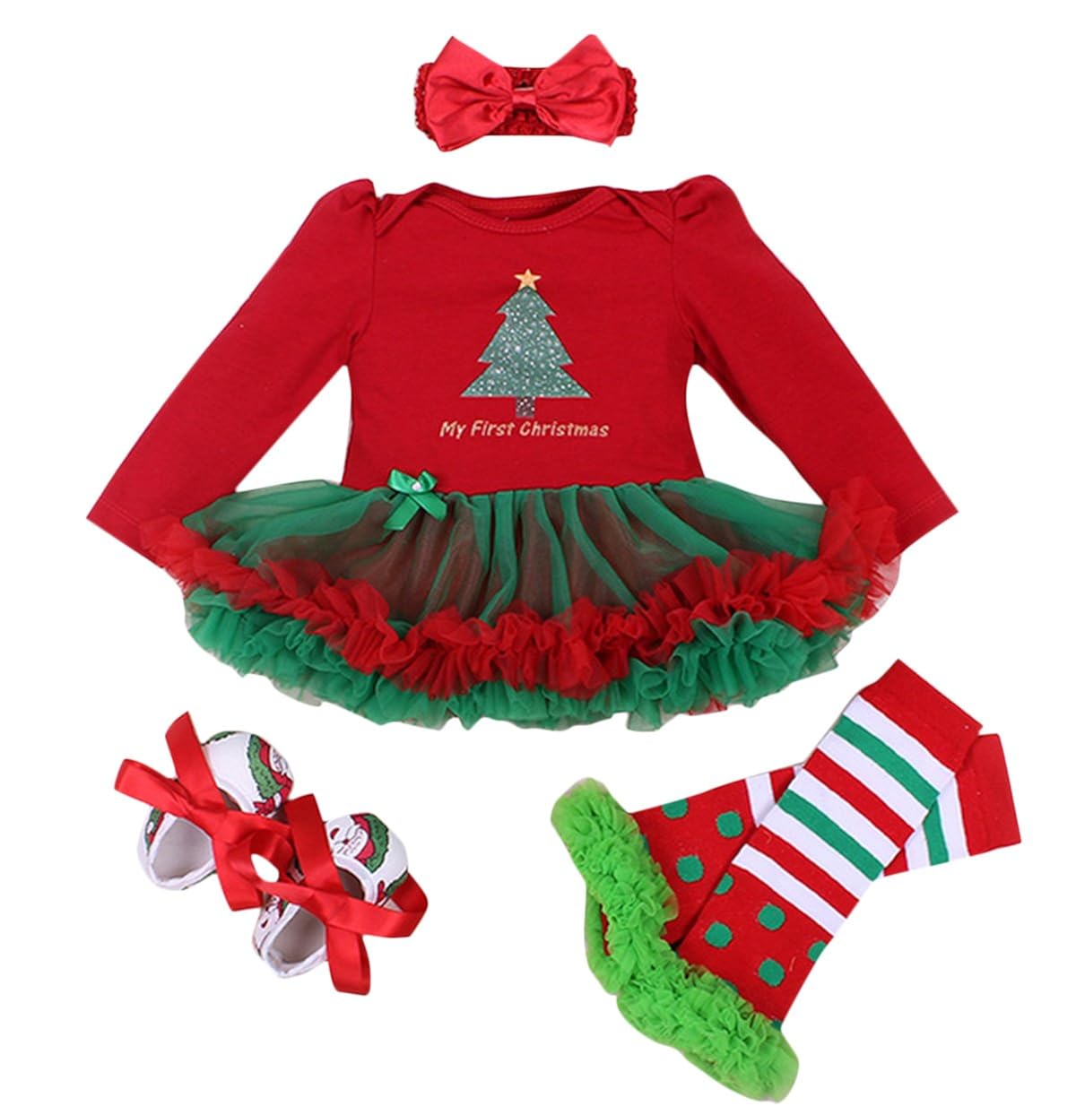 Talla 1 24 Meses Juego De 4 Navidad Rojo Vestido Ropa Traje De Navidad Para Bebes Ninas Recien Nacidos Con Mangas Largas Christmas Venda De Pelo Y Calcetines Zapatos Para Fiesta Ceremonia Feoya