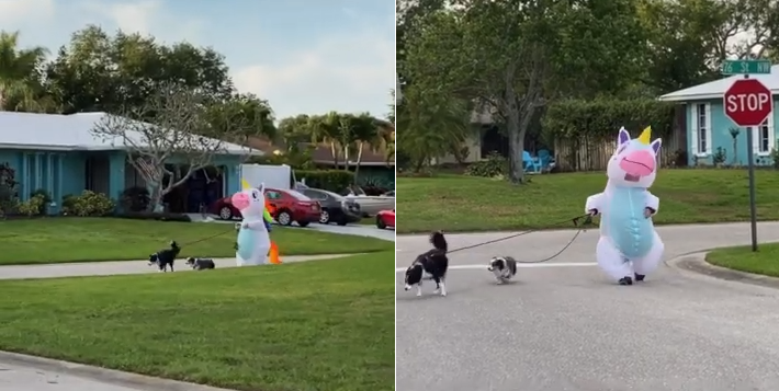 Chica Usa Un Disfraz De Unicornio Gigante Para Pasear A Sus Perros De Forma Segura