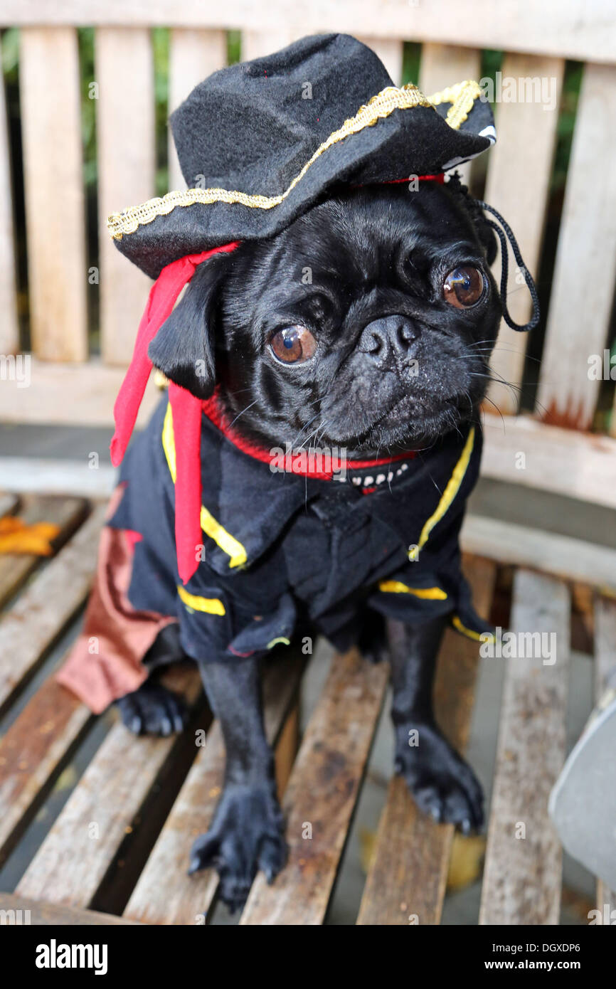 Londres Reino Unido 27 De Octubre De 2013 Einstein El Pug Vestido Con Un Traje De Pirata En La Materia A Todos Los Perros De Disfraces De Halloween Perro A Pasear Hampstead