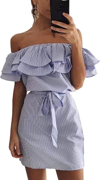 Uojack Vestido Corto De Verano Para Mujer Con Rayas En Los Hombros Y Espalda Azul Celeste M Amazon Es Ropa Y Accesorios