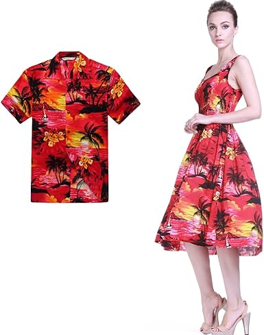 Hula Hula Batik Pareja Hawaiano Combinacion Luau Aloha Camisa Y Vestido De Tanque En Rojo Del Sol Amazon Es Ropa Y Accesorios