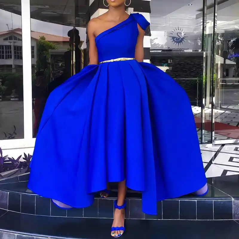 Vestido Oblicuo Hasta El Suelo De Un Hombro Para Fiesta Cena Verano Azul Elegante Cita De Noche Una Linea De Talla Grande Maxi Vestidos Mujer Vestidos Aliexpress