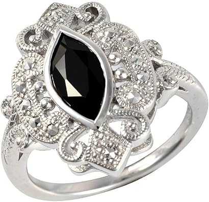 Esse Marcasite Plata De Ley Chapado En Negro Spinel Y Marcasita Victoriano Vestido Anillo Tamano Q Amazon Es Joyeria