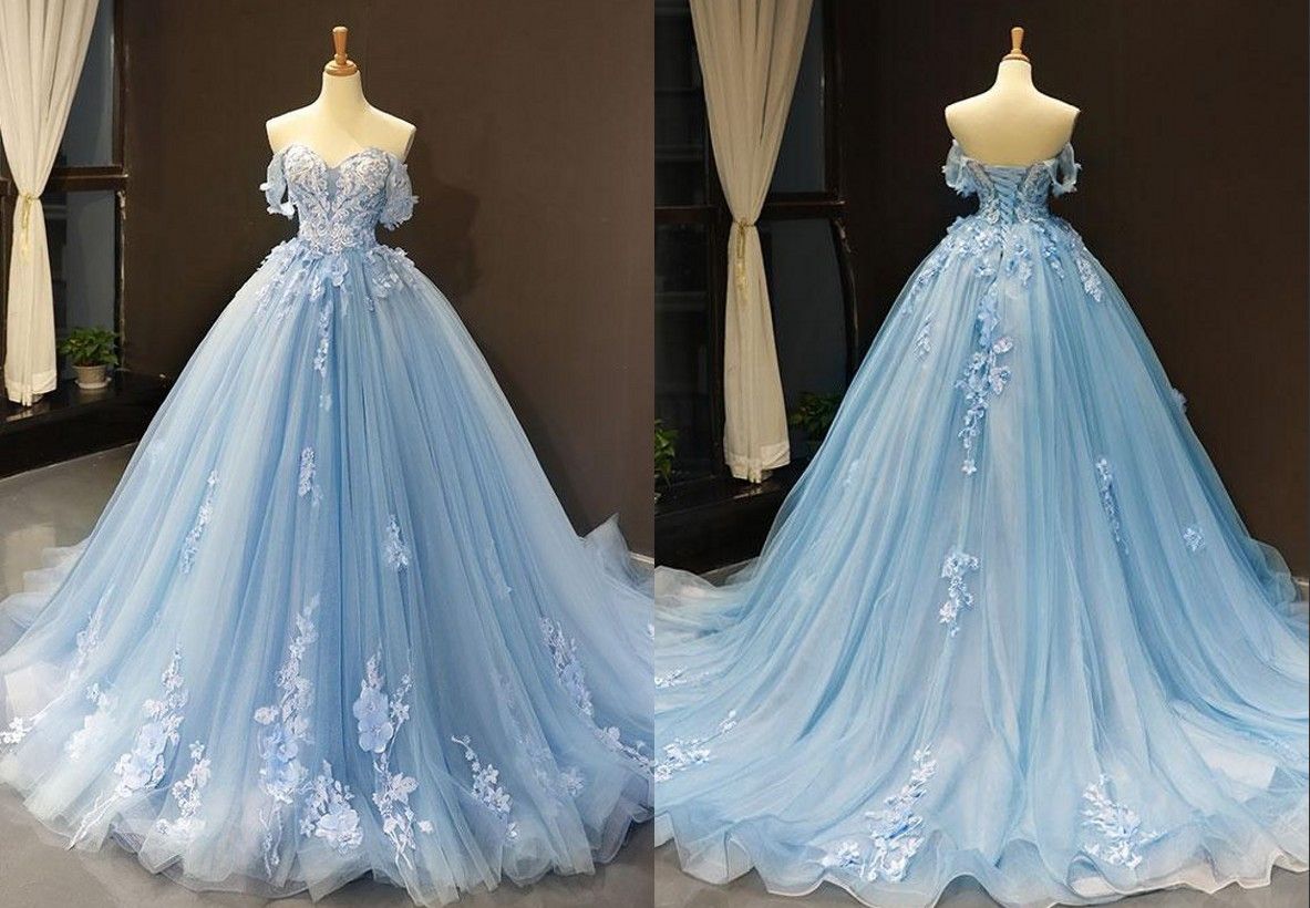 Vestidos De Novia Azul Claro Fuera Del Hombro Encaje Tul Aplique Longitud Suelo Vestidos Largos De Novia Vintage Cathedral Train Cathedral Train Bridal Gownwedding Dress Aliexpress