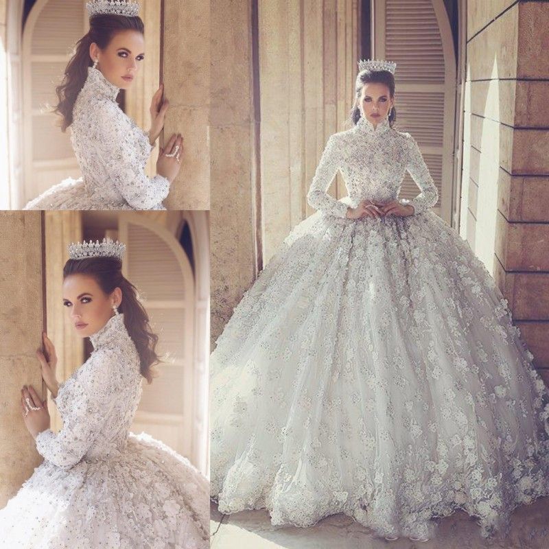 Vestido De Noiva Princesa Cuello Alto Manga Larga Musulman Vestido De Novia De Lujo Vestidos De Boda Boton Volver Vestidos De Novia Wb78 En Vestidos De Novia De Bodas Y Eventos