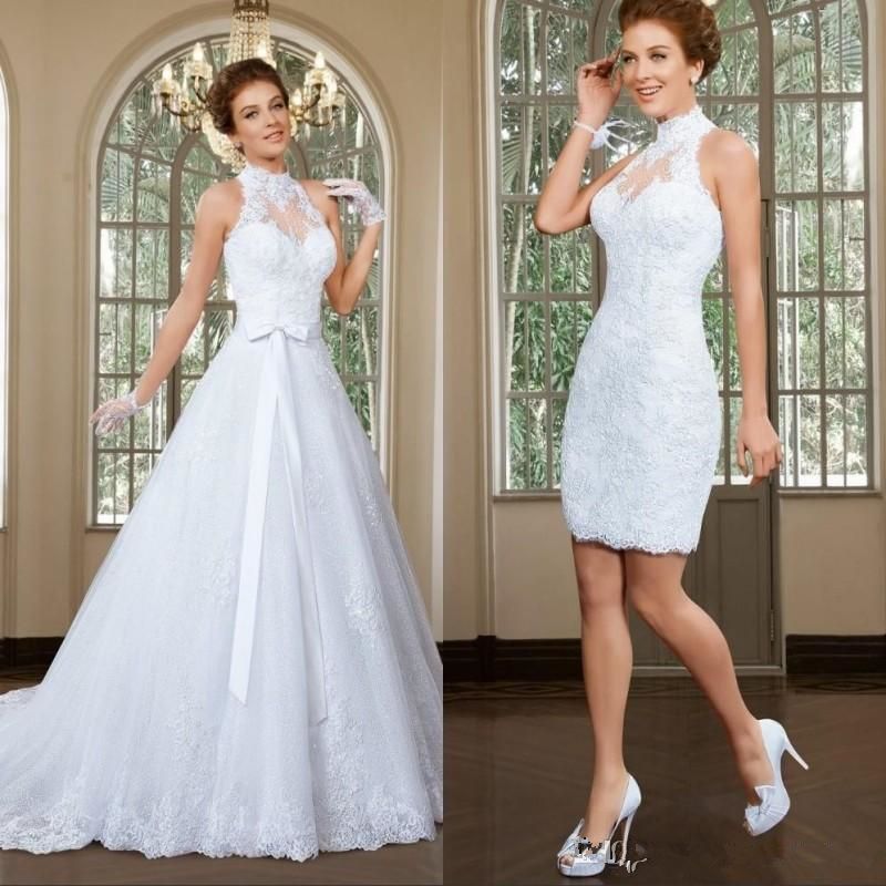 Compre Aturde Vestido De Novia Vestidos De Boda De Cuello Alto Convertible Blanco Con Apliques De Encaje Tribunal Tren De Largo Envueltos De La Boda Vestidos De Traje De Soiree A 138 19