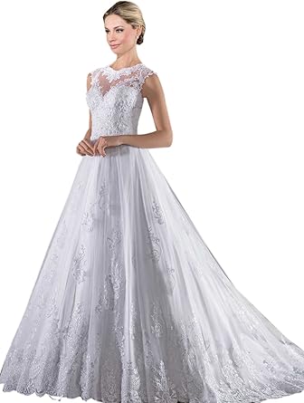 Amazon Com Cjmy Vestido De Novia 2019 Para Mujer Cuello Alto Diseno De Imperio De Barrido De Princesa Con Boton Trasero Vestido De Boda Para Novia Moderno Equipada Us 18w Clothing
