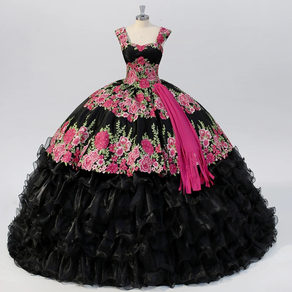 Vestido De Quinceanera Con Apliques Bordados Negro Mexicano Charra 16 Anos 15 Anos 2020 Vestidos De Quinceanera Aliexpress
