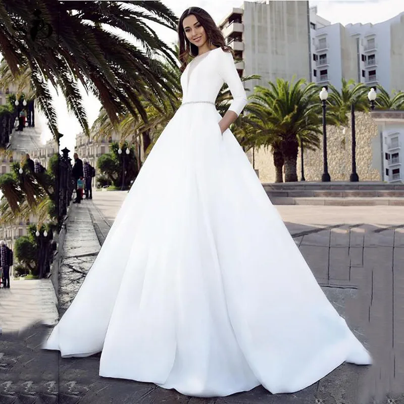 Sodigne Satin Wedding Dresses V Neck Bride Dresses Buttons Vestido De Novia Boho Elegant Wedding Gown Pockets Custom Made Wedding Dresses Aliexpress