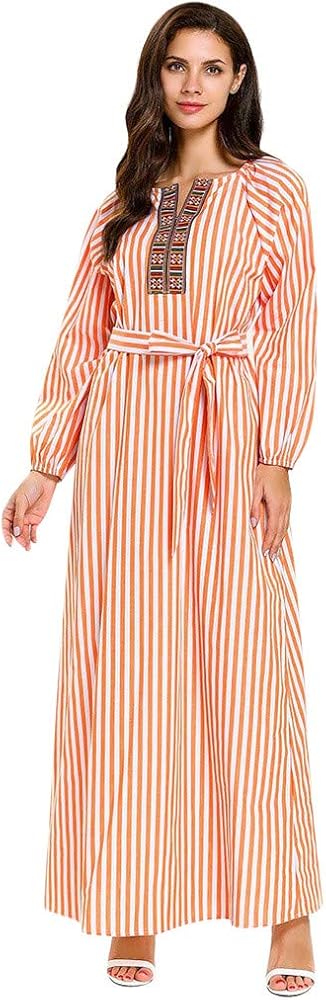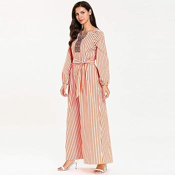 Muslim Vestido De Mujer Estampado A Rayas Manga Larga Puff Cuello En V Cintura Abaya Modesto Kaftan Islamico Casual Fiesta Noche Diario Maxi Vestidos Amazon Es Ropa Y Accesorios