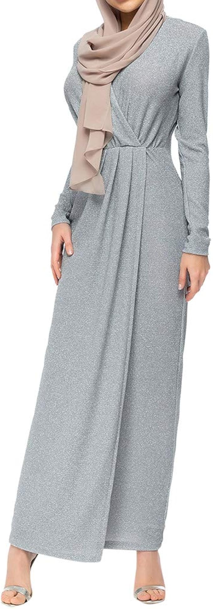 Muslim Vestido De Mujer Brillante Color Solido Manga Larga Cuello En V Cintura Fruncido Vestido Abaya Islamico Casual Modesto Maxi Vestido Kaftan Ropa Santo Mes Amazon Es Ropa Y Accesorios