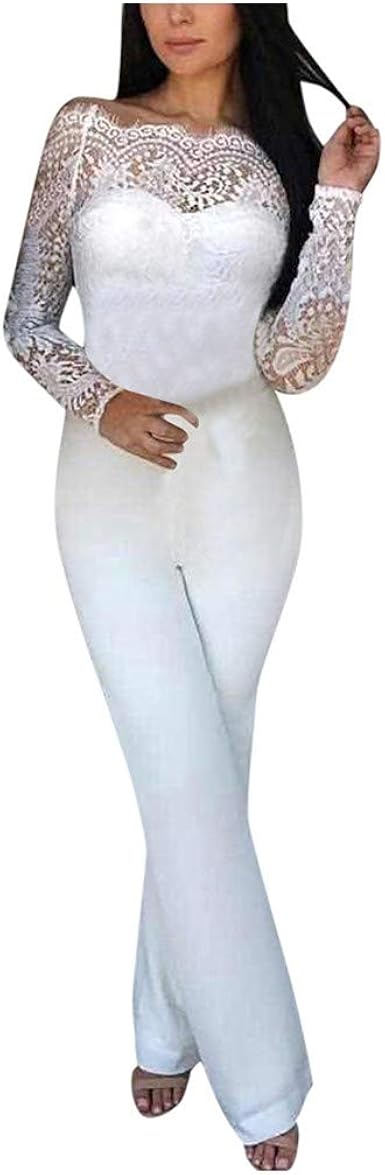 Elegante Mono Vestidos De Dama De Honor Sunnsean Playsuit Pantalones Largo Mameluco De Fiesta De Boda Elastico Mangas Largas De Encaje Sexy De Moda Monos Trajes De Dama De Honor Blanco Amazon Es
