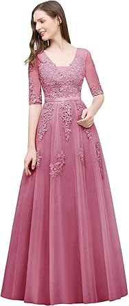 Vestido De Dama De Honor Con Encaje Y Manga Larga De Gasa Para Playa Boda Noche Fiesta Fiesta Para Jovenes Mujer Rubor Rosa Amazon Com Mx Ropa Zapatos Y Accesorios