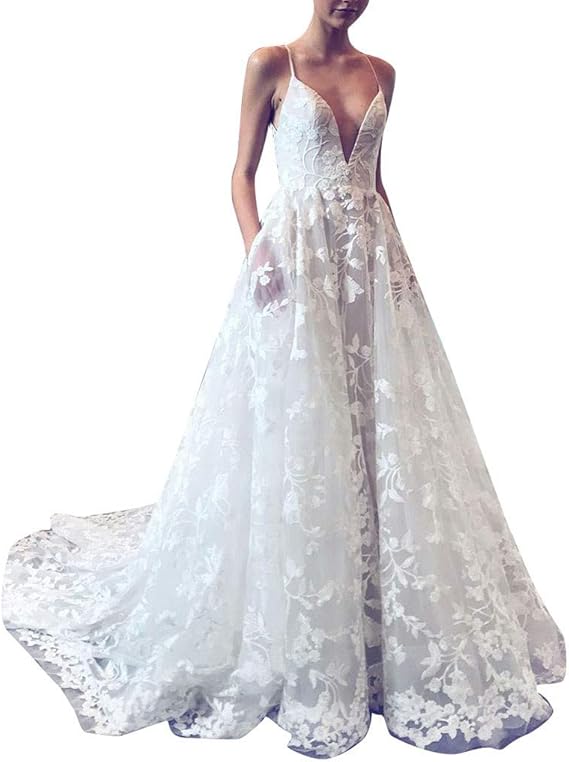 Edc Vestido De Novia Con Correa De Espagueti Para Novia 2020 De Encaje De Gasa Sexy Corte Bajo Cuello En V Vestido De Dama De Honor Vestido De Noche Blanco S