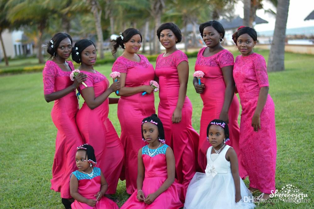 Compre Vestidos De Dama De Honor De Estilo Sudafricano Caliente Del Tamano Extra Grande Vestidos De Dama De Honor De Sirena Para El Vestido De Partido Del Cordon De La Cucharada De