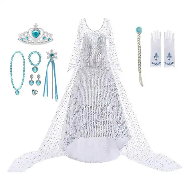 Frozen 2 Vestido De Princesa Elsa Para Navidad Carnaval Disfraz De Elsa Para Fiesta De Cumpleanos De Ninos Vestido De Cola Larga Con Lentejuelas Blancas Vestidos Aliexpress