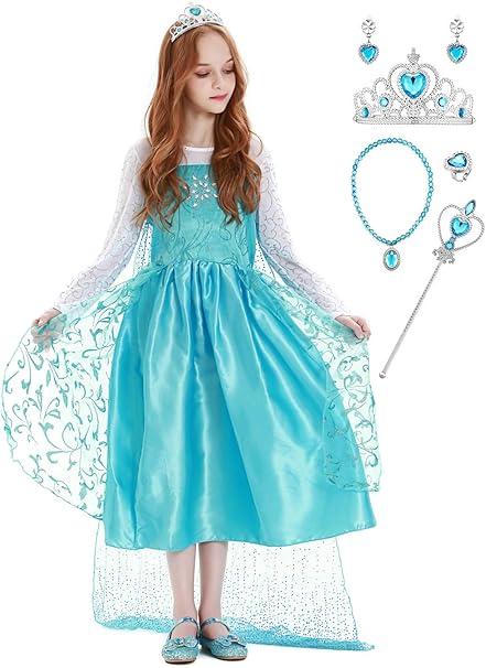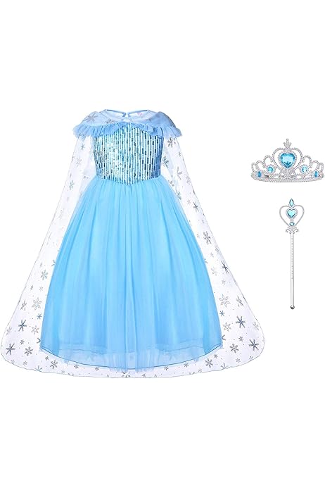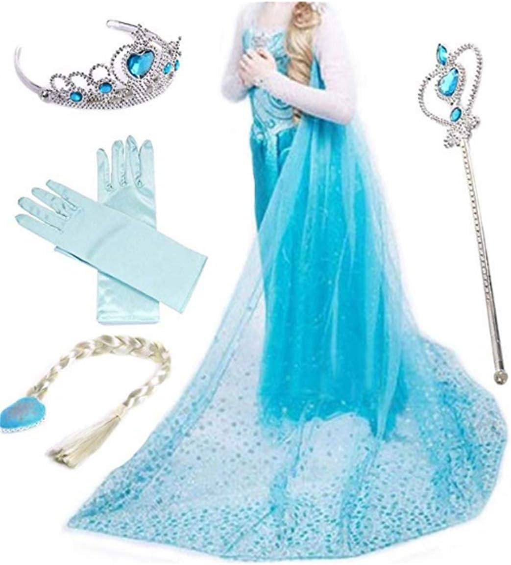 Uraqt Vestido De Elsa Disfraz De Elsa Con Accesorios De Cosplay Vestido De Princesa Para Ninas Con Capa De Copos De Nieve Brillantes Para Halloween Cumpleanos Carnaval Y Fiesta Amazon Es Juguetes Y