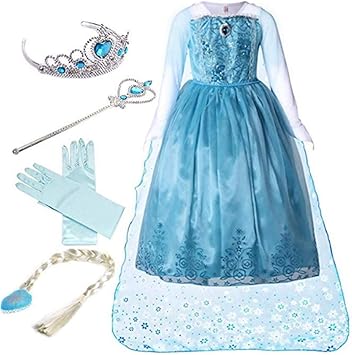 Yosicil Ninas Vestido De Princesa Elsa Disfraz Reina Frozen Elsa Accesorios Traje De Fiesta Cosplay Vestido De Tutu Costume Azul Vestido De Fiesta De Cumpleanos Fancy Dress 110 150cm 3 9anos Amazon Es Ropa Y